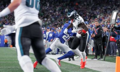 Cam Skattebo dubbed a “beast” by teammate Kayvon Thibodeaux after scoring three touchdowns in New York’s 34-17 win over the Eagles.Read...