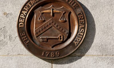 By Benjamin Mejias A bronze seal for the Department of the Treasury is shown at the U.S. Treasury building in Washington,...