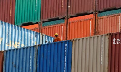 By Andrea Shalal and Manoj Kumar FILE PHOTO – A worker sits on a ship carrying containers at Mundra Port in...