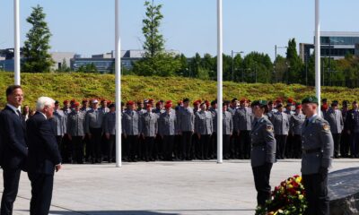 German President Frank-Walter Steinmeier and NATO Secretary General Mark Rutte attend a wreath-laying ceremony to mark the 70th anniversary of Germany’s...