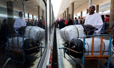 By Nafisa Eltahir and Khalid Abdelaziz A Sudanese man waits next to his luggage, as families displaced by conflict between the...