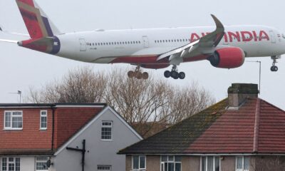 By Aditya Kalra An Air India passenger plane flies near houses as it makes its landing approach to Heathrow Airport in...