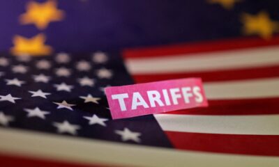 By Julia Payne and Jan Strupczewski U.S. and European Union flags and a “tariffs” label are seen in this illustration taken...