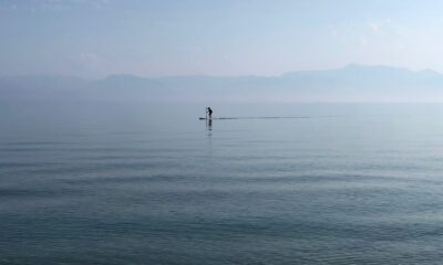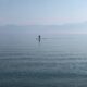 A man paddles in the waters of the Ionian Sea near Sidari settlement on the island of Corfu, Greece July 26,...