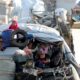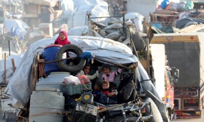 By Timour Azhari Item 1 of 3 Syrian refugees sit with their belongings on a pick-up truck as they prepare to...