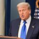 U.S. President Donald Trump speaks to the media after the U.S. Supreme Court dealt a blow to the power of federal...