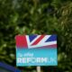 A Reform UK party poster is seen outside a house ahead of the forthcoming Runcorn and Helsby parliamentary by-election in Frodsham,...