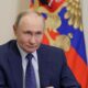 Russia’s President Vladimir Putin takes part in a ceremony opening youth centres in Russian regions via a video link at his...