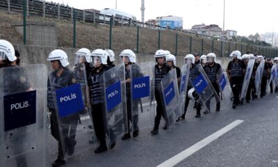 By Umit Bektas and Mehmet Emin Caliskan Item 1 of 5 Riot police walk outside the Istanbul provincial office of the...