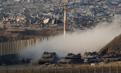 By Nidal Al-Mughrabi Item 1 of 3 Israeli tanks manoeuvre on the border with Gaza as seen from the Israeli side,...