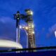 By Joey Roulette Item 1 of 5 Technicians work from a lift bucket before sunrise as preparations to launch a SpaceX...