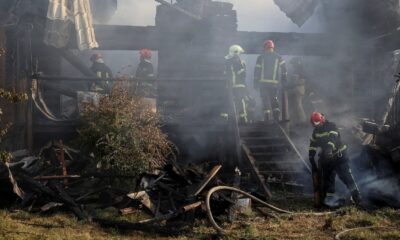 Item 1 of 2 Firefighters work at the site of a Russian missile strike, amid Russia’s attack on Ukraine, in the...