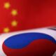 Printed Chinese and South Korean flags are seen in this illustration, July 21, 2022. REUTERS/Dado Ruvic/Illustration/File Photo Purchase Licensing Rights ,...