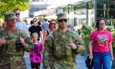 By Idrees Ali Item 1 of 4 People walk on the street near members of the National Guard after U.S. President...