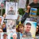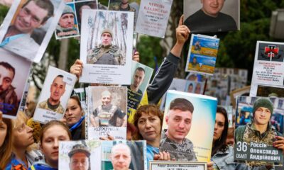 Item 1 of 6 People hold portraits of their relatives, Ukrainian prisoners of war (POWs), hoping they will be recognized by...