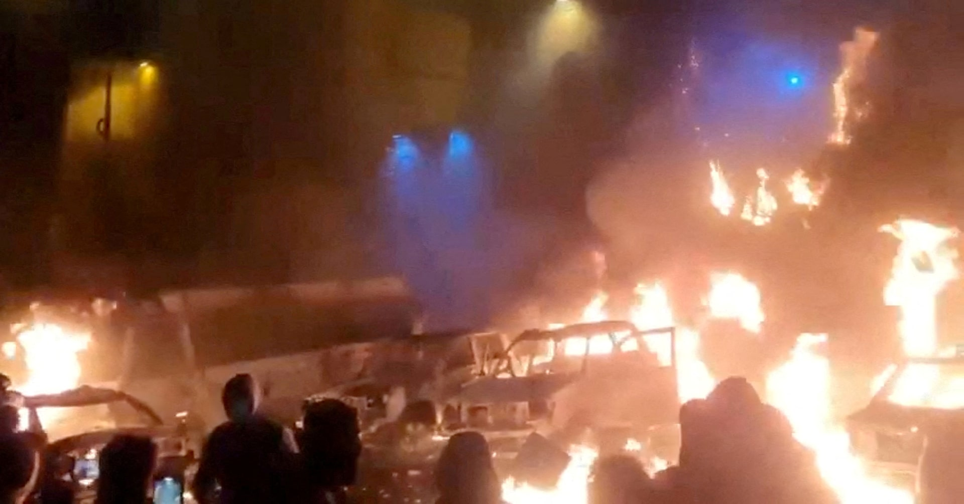 Item 1 of 2 Protesters gather as vehicles burn, amid evolving anti-government unrest, in Tehran, Iran, in this screen grab obtained from a social media video released on January 9, 2026. Social Media/via REUTERS/File Photo