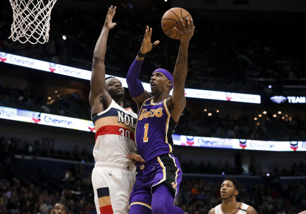 Caruso — a 6-foot-5 guard who played four seasons at Texas A&M before turning pro in 2016 — is on a two-way contract and has spent much of this season in the G League with the South Bay Lakers. Against New Orleans, he was 7-of-11 shooting, hitting all four of his 3-point shots. He also had a steal that set up his soaring one-handed dunk.