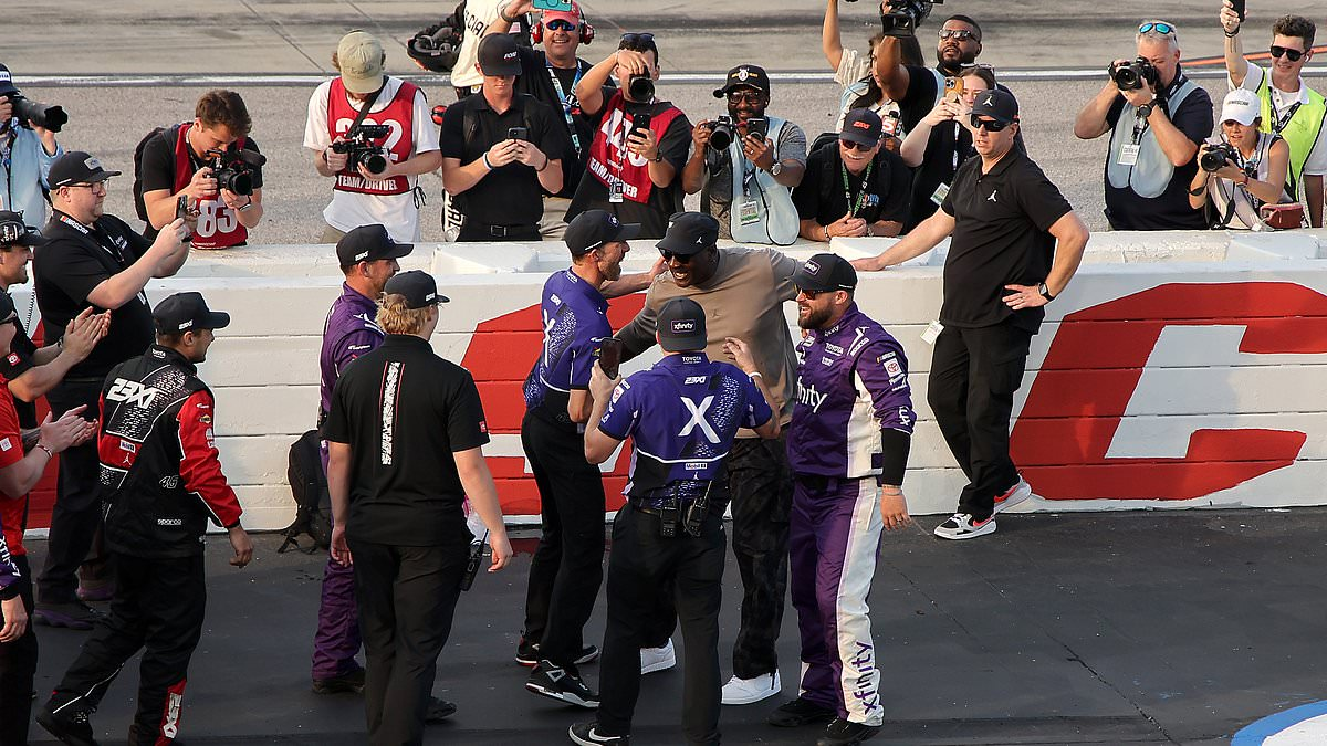 NASCAR’s top owner Michael Jordan celebrates driver Tyler Reddick’s fourth win of the year on pit row