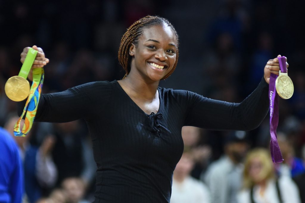 ATLANTIC CITY, N.J. (AP) — Claressa Shields tossed one championship belt around her neck, fastened another around her waist and draped one more over a shoulder.
